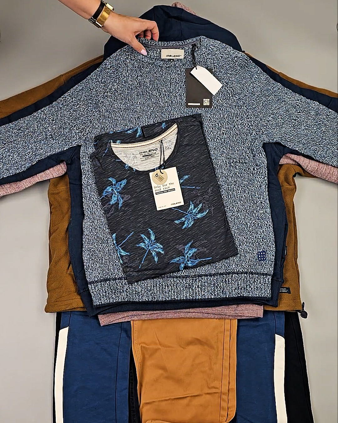 В мешке представлен мужской ассортимент - это продукция актуальных европейских брендов высокого качества. Отлично подойдет для закупки если целевым сезоном продаж является зима.
