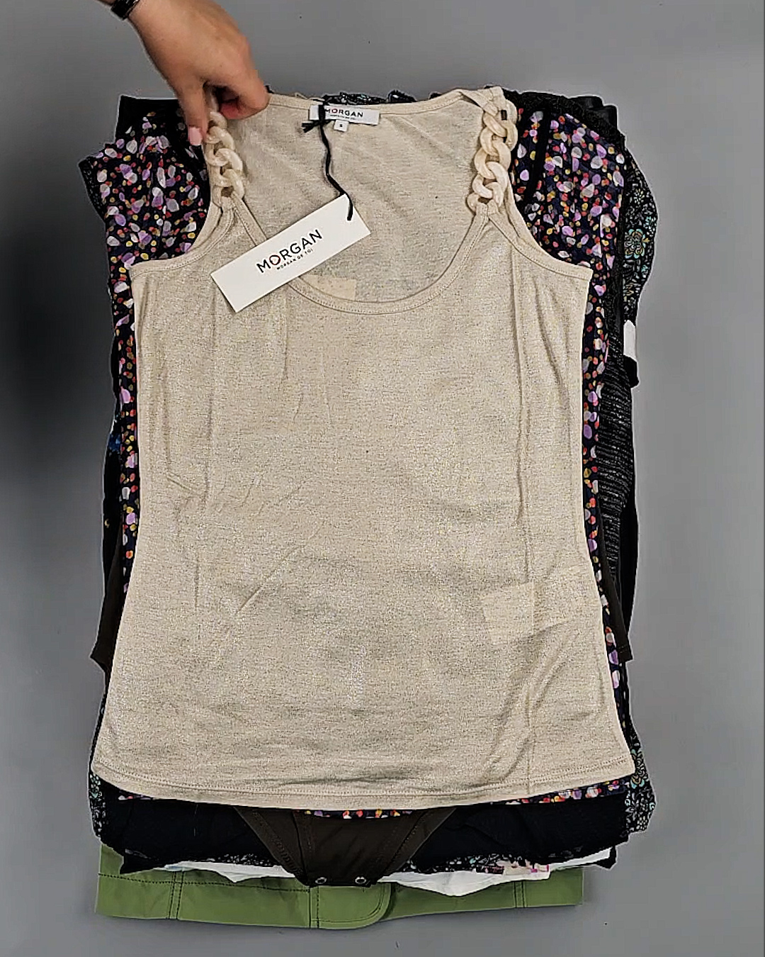В мешке представлен женский ассортимент - это продукция актуальных европейских брендов высокого качества. Отлично подойдет для закупки на любой сезон.